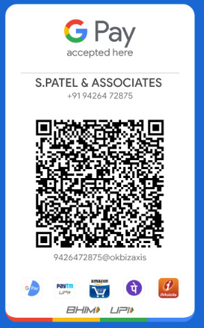 S.PATEL & ASSOCIATES BANK OF BARODA RAJPIPLA BRANCH ACCOUNT NUMBER : 02230200000440 Current Account MICR Code: 393012001 IFSC Code: BARB0RAJPIP (fifth Character is Zero) (used for RTGS, IMPS and NEFT transactions)